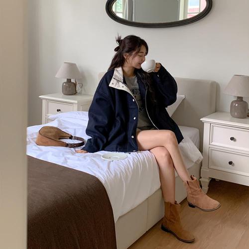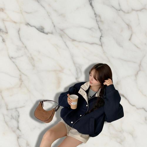 [바이어스]스티치 카라넥 루즈핏 퍼프 패드 크롭 숏 자켓 코디 (