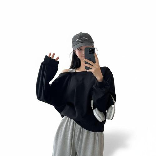 |KMTA053|여성 원숄더 오버핏 코튼 믹스 배색 나시 퍼프 맨투맨