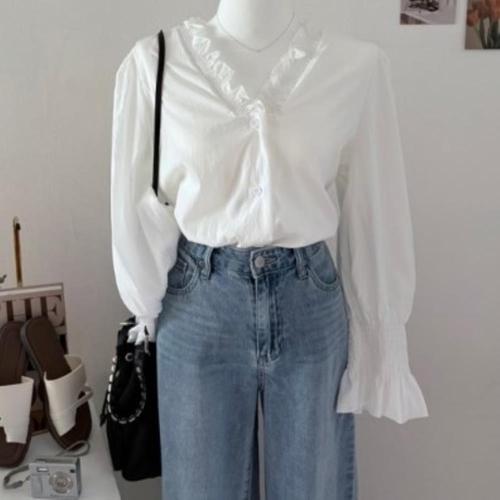 빅카라 퍼프소매 블라우스 긴팔 셔츠 데일리 오피스룩 봄 루즈핏