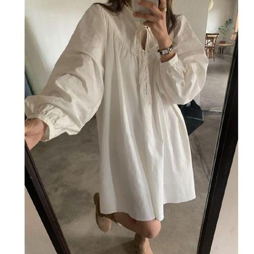 카라 포인트 라인 임산부 꾸안꾸룩 패ㅐ션 원피스 넉넉한핏 데일리 일상복 퍼프소매