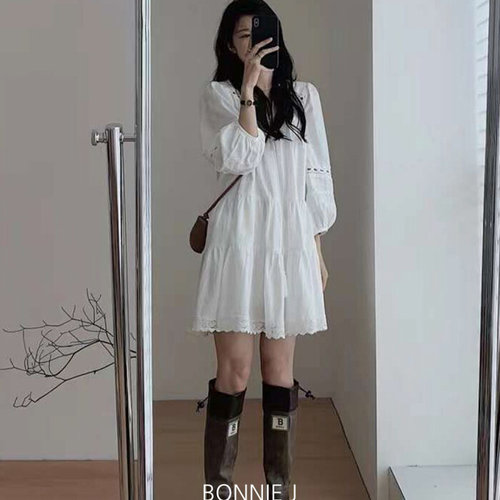 보니제이 / 에스닉 퍼프 루즈핏 레이스 캉캉 화이트 미니 원피스