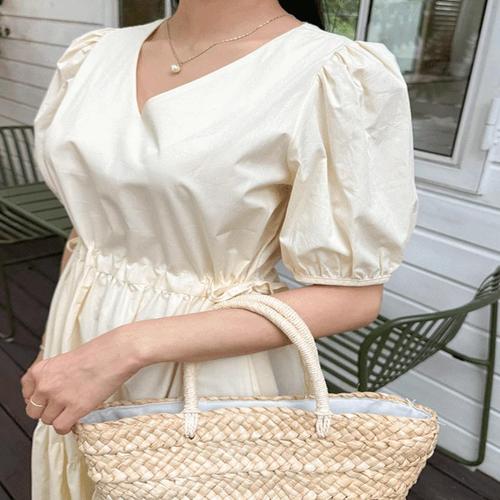 [옷자락]여자 캉캉 반팔 코튼 롱 숄더퍼프 원피스