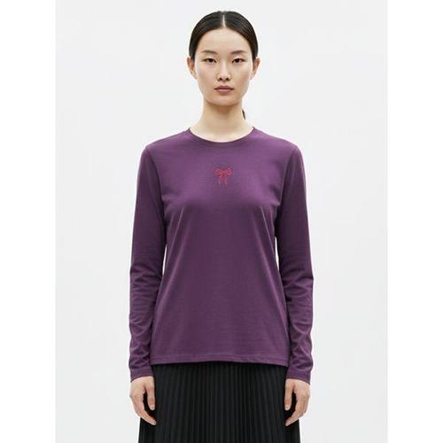 [샵앤]국산 여성 자수 리본 워싱 긴팔 티셔츠 DAI-WSH-20815-딥퍼플