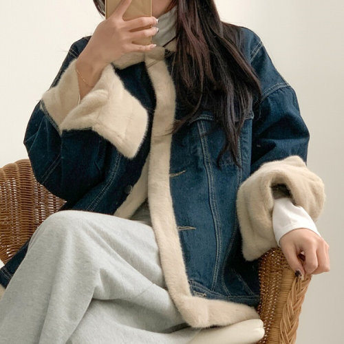 입꼬 / 마틴 오버핏 밍크퍼 데님 청자켓