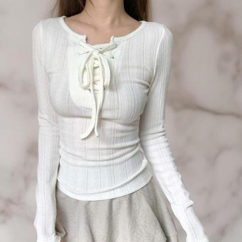 [다잇템][다잇템] 여성 스트랩 펀칭자수 긴팔티 슬림핏 골지 티셔츠_23381979_588872