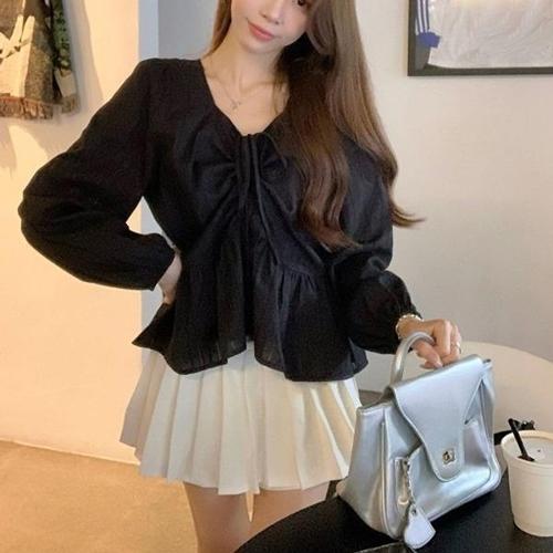 [엄지척]펀칭 자수 포인트 긴팔 셔링 브이넥 블라우스_19660321_667501