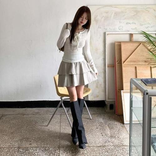 [다잇템][다잇템] 여성 슬림 골지 펀칭자수 롱슬리브 스트랩 티셔츠_23436026_588872