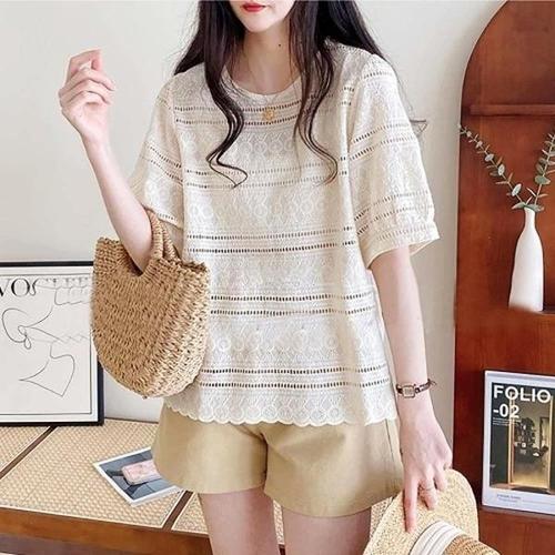 [엄지척]펀칭 자수 여성 반팔 여름 블라우스 데이트룩 휴가룩_19650524_667501
