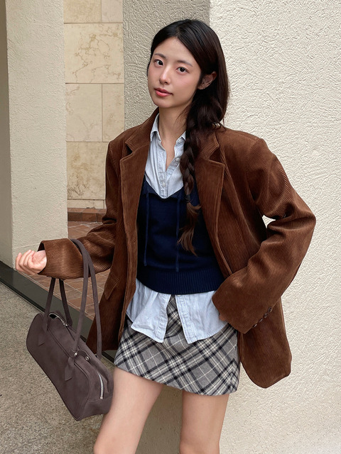 TEMU 새로운 스타일 코듀로이 여성 숄더백, 대형 가슴 가방