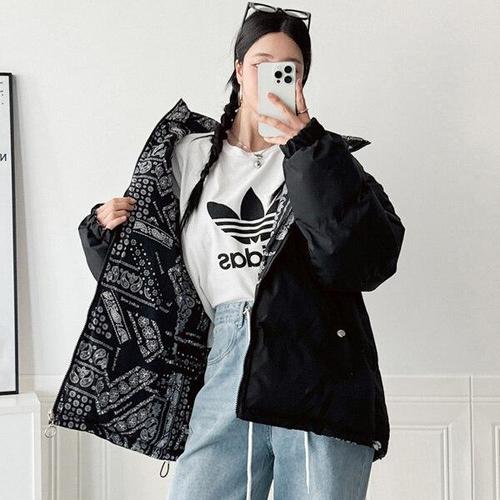 지디오 남여공용 리버시블 페이즐리 패딩 겨울 방한 오버핏 양면 점퍼 하이넥 힙한 스트릿 아우터