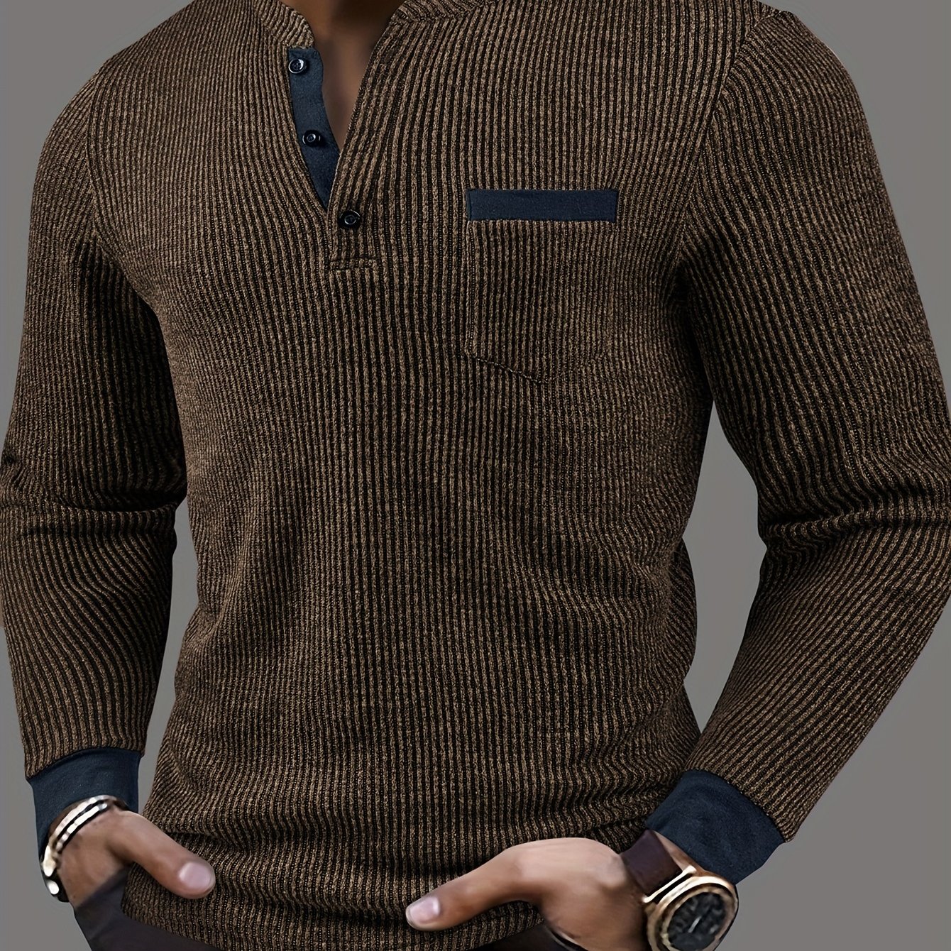 TEMU 남성용 텍스처 긴팔 캐주얼 헨리넥 셔츠, 통기성 좋은 원단으로 제작, 세탁기 사용 가능, 야외 및 사무실 데일리 웨어에 적합, 다기능 의류, 고품질 소재, 가볍고 스타일리시한 남성용