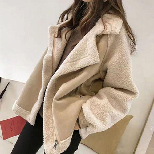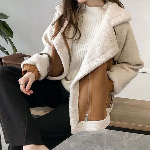 [셀럽하우스]부클 ZMHN6676 여자 페이크퍼 자켓 배색 양털 뽀글이 점