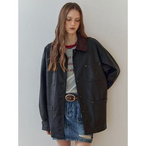 [마쟈]코듀로이 배색 카라 페이크 레더 자켓