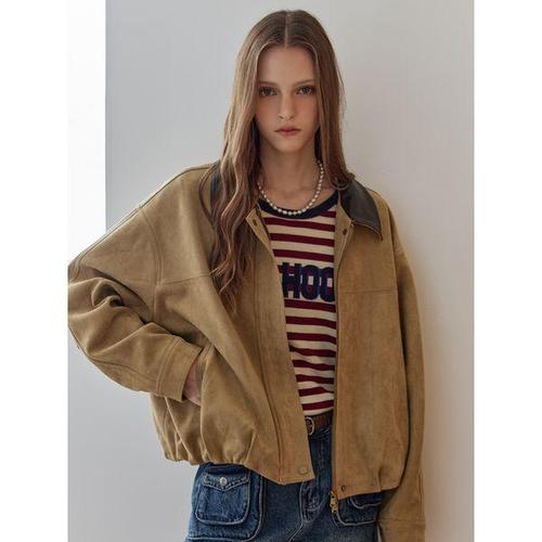 [마쟈]레더 배색 카라 페이크 스웨이드 점퍼