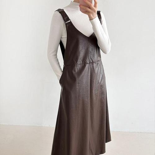 [H스타일](OP)레더멜빵롱원피스(25-202) 겨울 원피스
