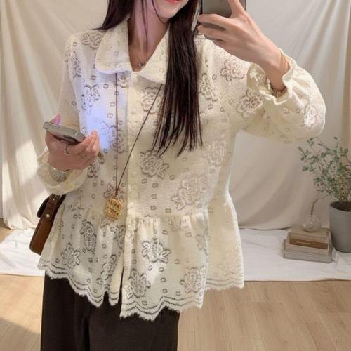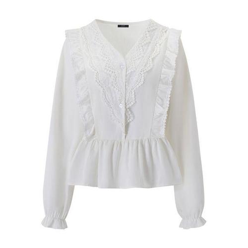 [옷자락]여성 봄 하객 레이스 프릴 페플럼 블라우스