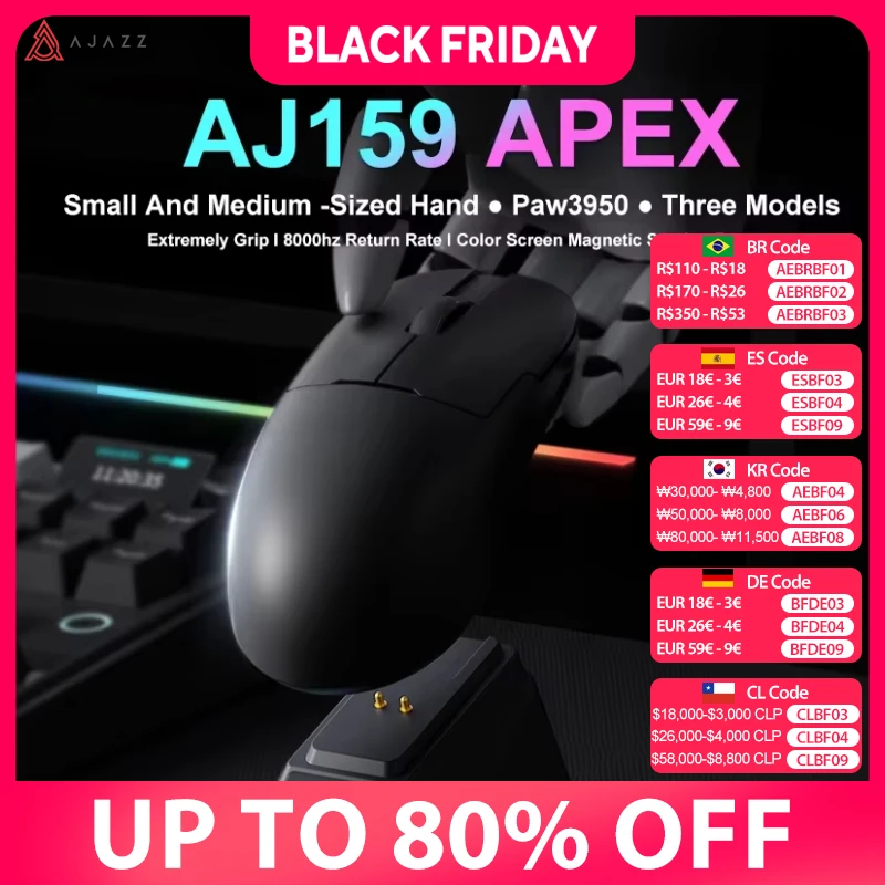 AJAZZ AJ159 APEX/AJ159PRO 무선 게이머 마우스(RGB 자기 충전 베이스 포함) PC 노트북용 경량 AJ159P 게임용 마우스