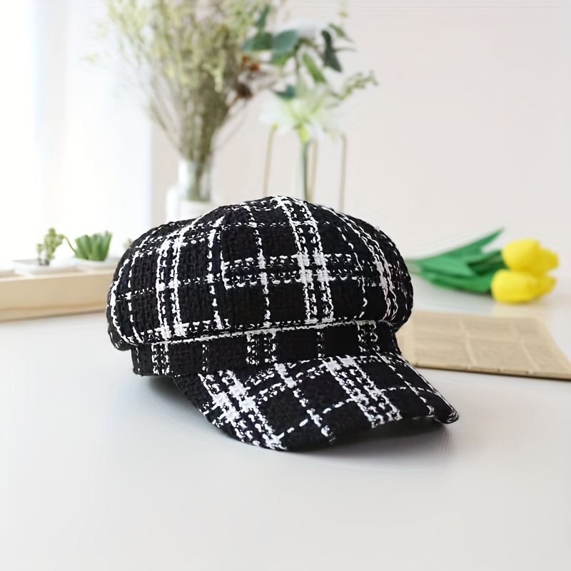 TEMU 여성용 블랙 앤 화이트 베레모 - 스타일리시, 캐주얼, 따뜻하고 다재다능한 팔각형 모자 - 가을, 겨울 일상 외출에 적합 - 훌륭한 선물 옵션 - 휴일 선물로 완벽
