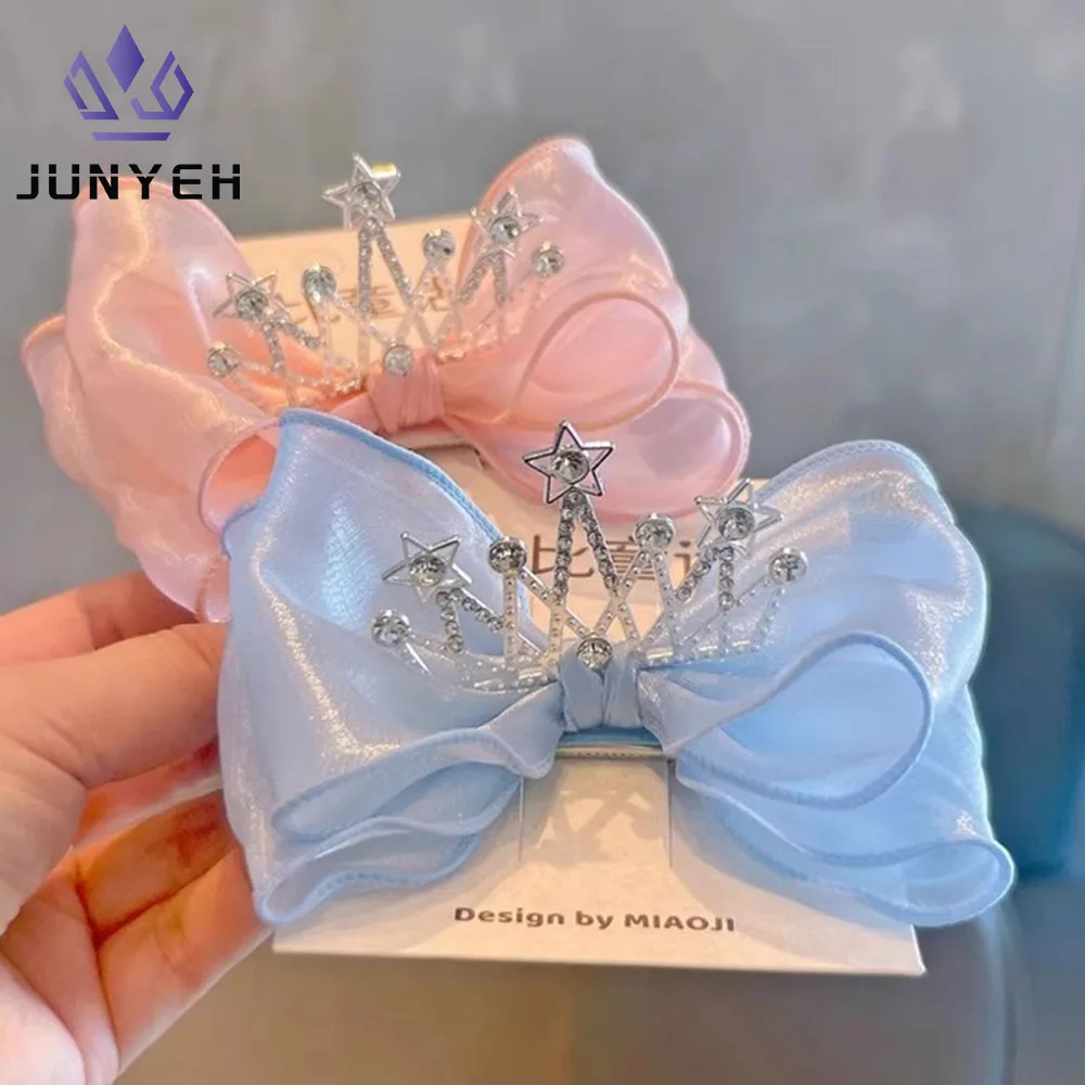 공주 머리핀 큰 리본 헤어 클립 어린이 왕관 리본 덕빌 클립 여자아이 학교 헤어그립 헤드웨어 선물 키즈 헤드드레스