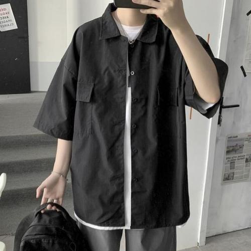 [오너클랜]인기상품 남성 검정셔츠 단색 포켓 반팔 셔츠 여름 기본 디자인 [WC8E178_250917]