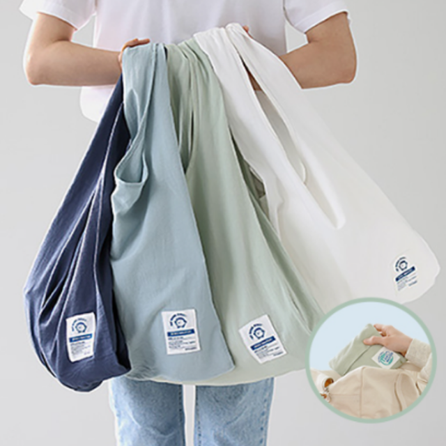 [1개+1개] 대용량 접이식 장바구니 포켓형 배색 에코백 휴대용 튼튼한 캠핑 다용도 가방 4color