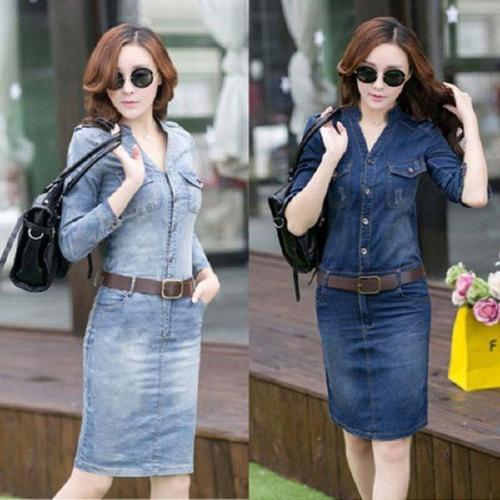 [다잇템]여자 트임 SS 단추 언발벨트 더블포켓 롱원피스