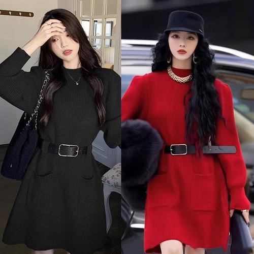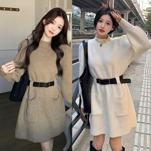 [옷자락]여성 지퍼트임 허리벨트 롱 포켓 원피스