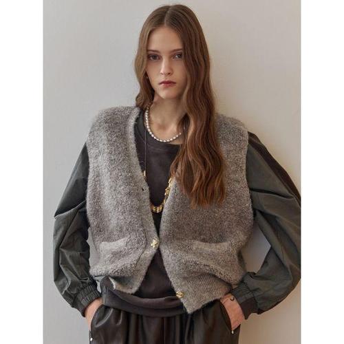 [마쟈]골드 버튼 포켓 부클 니트 베스트