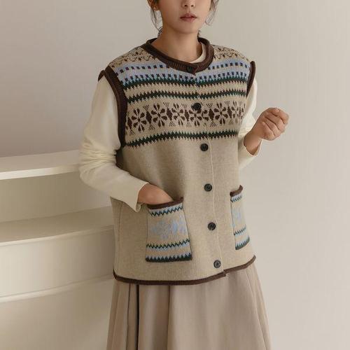 [66-100] 토쿨 패턴 포켓 니트 베스트
