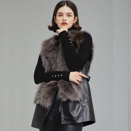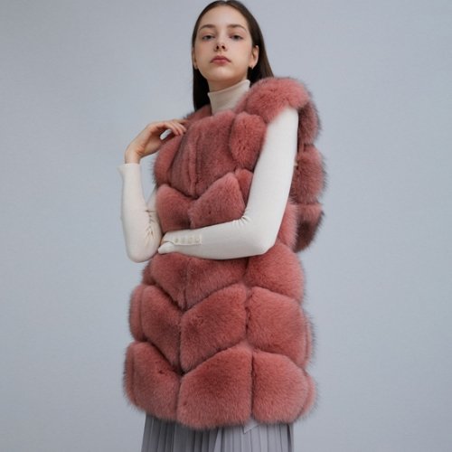 지고다그 여성 고급스러운 폭스퍼 스타일 따뜻한 무스탕 조끼 아우터 SX71452