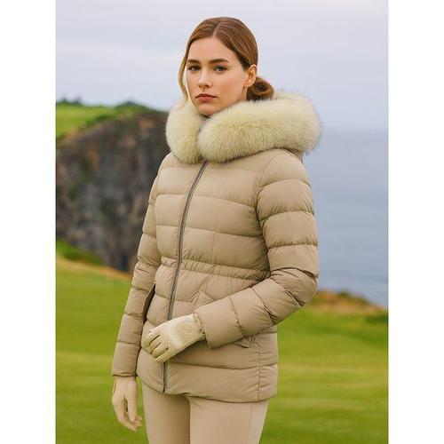 [맥케이슨]여성 후드 폭스퍼 트리밍 중힙 구스다운 베이지 MCW4JD643BEG