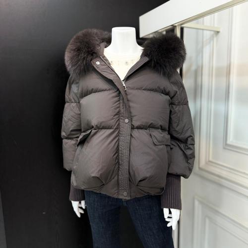 [핑]여성 폭스퍼 후드 구스다운 점퍼 121E4JA354_DG