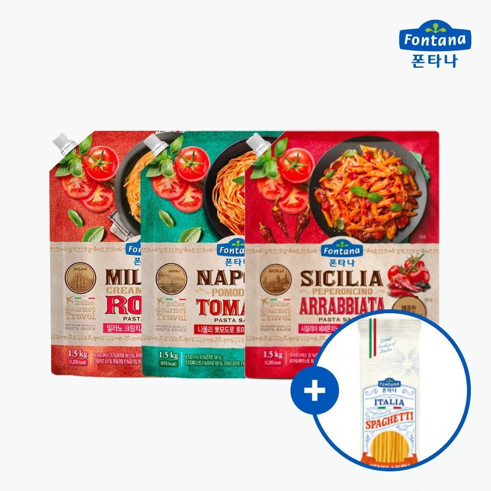 폰타나 파스타소스, 볼로네제, 430g, 2개 + 까르보나라, 430g, 1개 + 이탈리아 캄파니아 스파게티 500g,1개