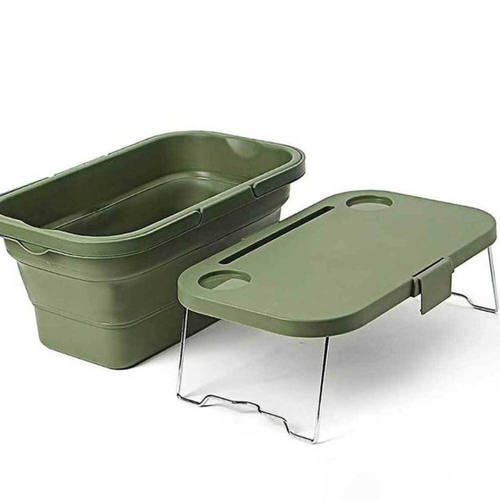 스토리지 오픈 도어 캠핑 폴딩박스 56L 우드 상판 테이블 대용량, 그린, 1단, 1개