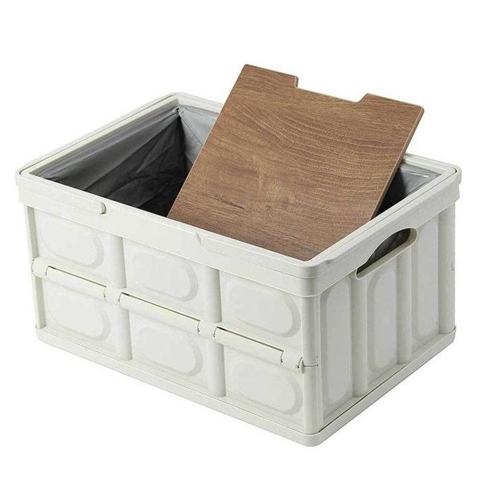 Happy Box 캠핑 수납 트렁크 정리 우드상판 폴딩박스 접이식 다용도 수납함 28L