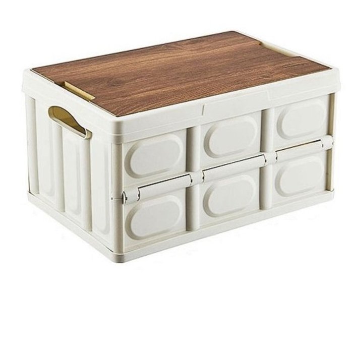 보관용 폴딩박스 이동형 보냉백 트렁크 정리함 53cm 수납함 정리 우드상판