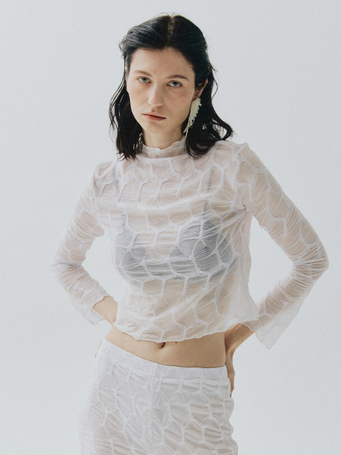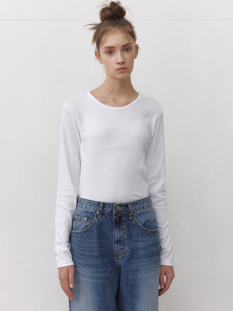 [베데르미] 텍스처드 시어 롱 탑 (화이트)