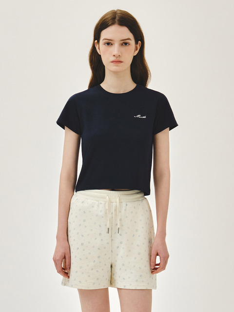 [마리떼 프랑소와 저버] W SMALL LETTERING SLIM CROP TEE navy