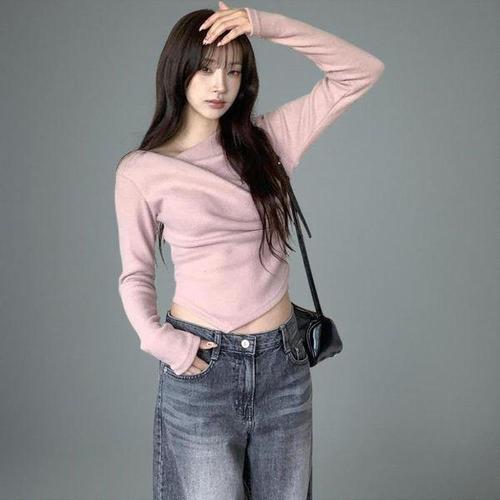 [신상오픈런]여성 폴리에스터 스판 기모 드레이프 언발란스 긴팔 니트