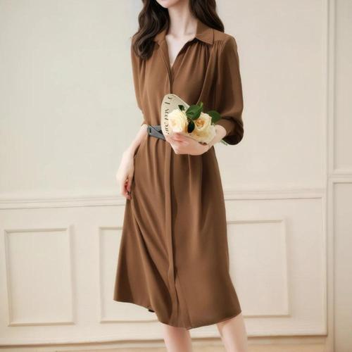 TEMU 우아하고 지적인 단색 캐주얼 루즈핏 스타일리시 기본 셔츠 원피스