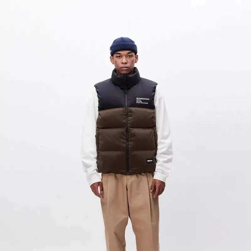 NBHD CLASSIC MIDDLE THI 다운 조끼 재킷 청소년 트렌디 덕다운 조끼 젊은 남성을 위한 패치워크 컬러 조끼 가을 지퍼