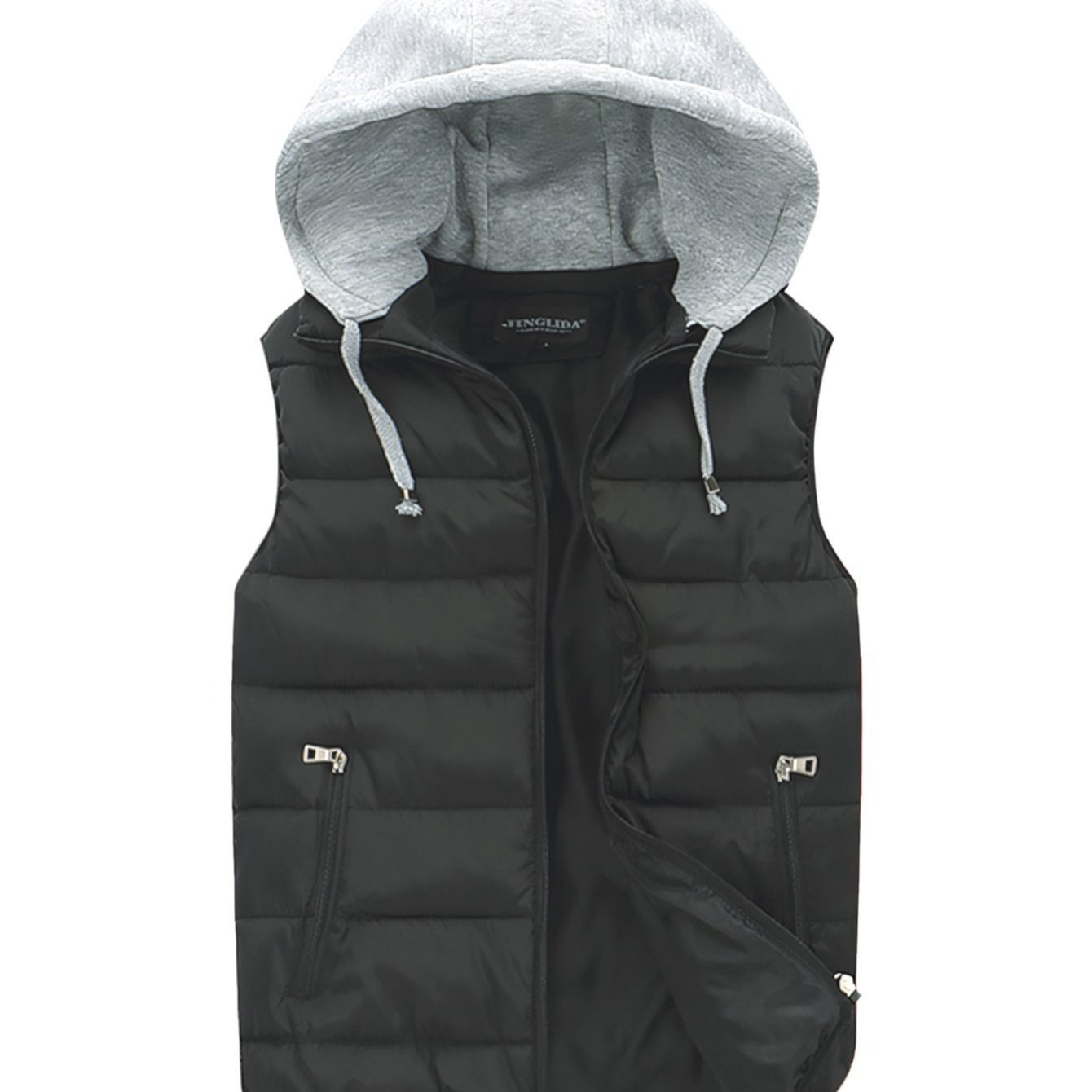 남성용 겨울 신상 후드 다운 베스트 남성용 따뜻한 방풍 초경량 민소매 베스트 탈부착 가능한 모자 방수 베스트 브랜드 조끼 남성용