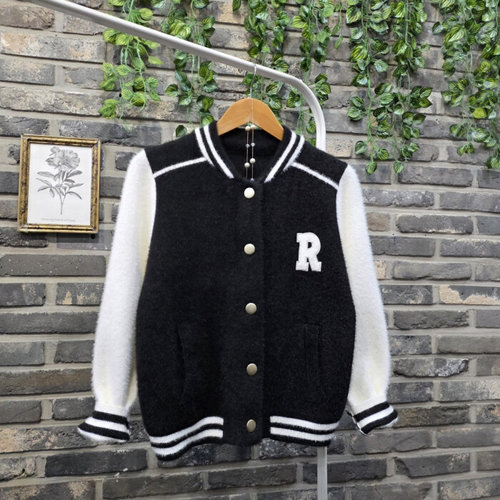 퐁당 / 영문 레터링 배색 라인 야구 점퍼