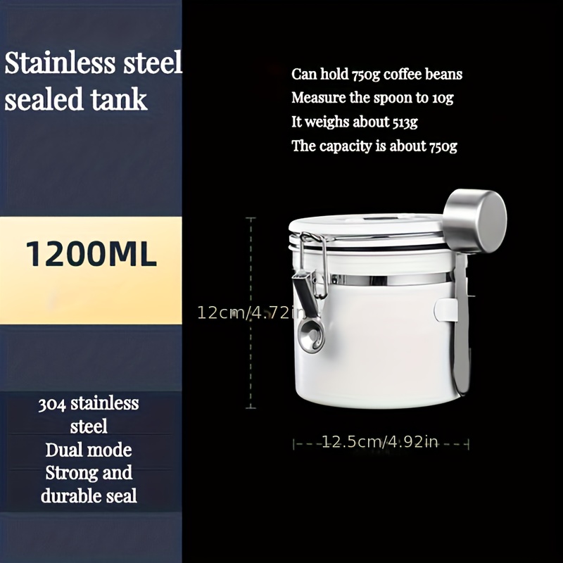 TEMU 파리다비오 업그레이드된 304 두꺼운 스테인리스 스틸 밀폐 보관 용기와 숟가락 - 커피콩, 차, 설탕 및 쌀에 이상적 - 커피를 더 오래 신선하게 유지하는 원방향 배출 밸브 기능, 가정 및 사무실 사용에 적합