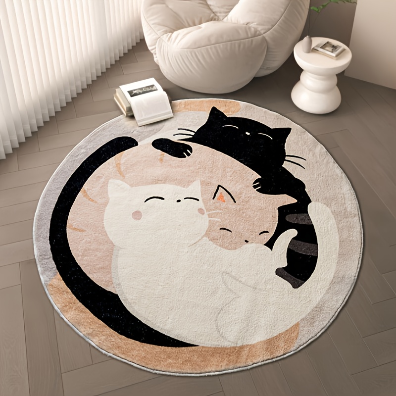TEMU 음양 고양이 하모니 매트 | 부드럽고 내구성 있는 미끄럼 방지, 세탁기 사용 가능한 인조 캐시미어 매트, 거실 또는 사무실 장식에 적합, 가벼운 폴리에스터 혼방, 빈티지 디자인, 실내 공간에 완벽, 중성 크림색, 스타일, 거실 매트