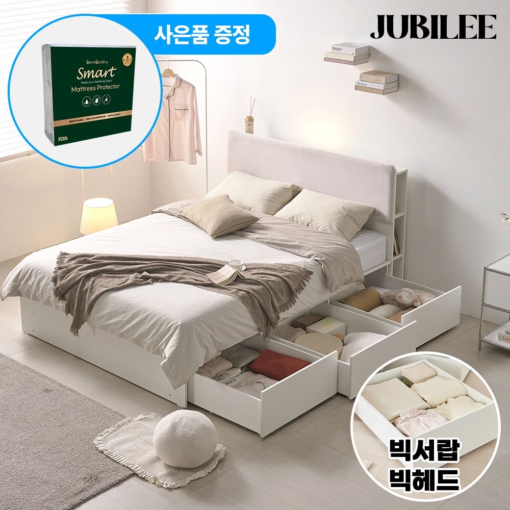 방수커버 증정이벤트! / E0등급 플레시아 LED조명 빅서랍 수납침대 프레임 SS/Q