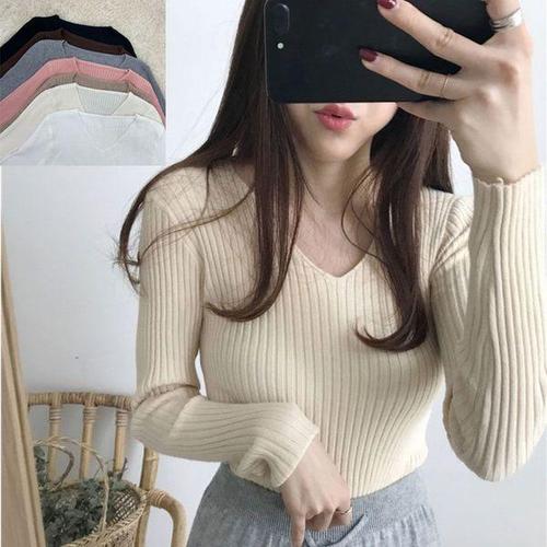 [에이치플러스몰]브이넥 골지 니트 슬림핏 프리사이즈 편한 티 7컬러