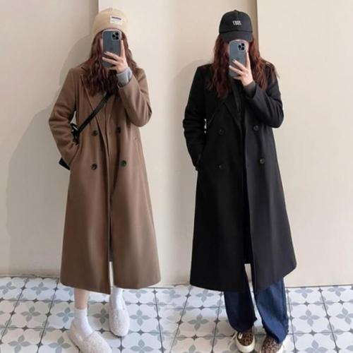 TEMU 여성 데일리 통근 더블 카라 벨트 루즈핏 롱 트렌치코트 블랙 카키 캐주얼 폴리에스테르 봄 가을 야상 데이트 롱 점퍼 겉옷 상의 코디 코트