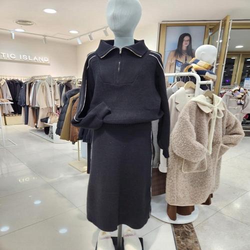 [플라스틱아일랜드][SET] 뒷트임스커트+반집업니트 PR4KL531_DG