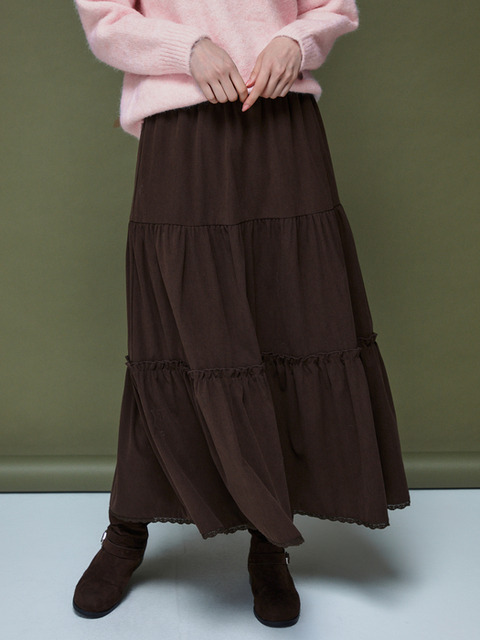 [플라스틱아일랜드] 셔링 티어드 코듀로이 스커트 PR4WS162